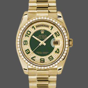 Rolex Day Date 118348 Green Diamond Dial Yellow Gold 36mm Unisex Replica Watch