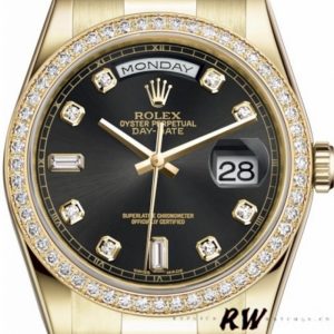 Rolex Day Date 118348 Yellow Gold Black Diamond Dial 36mm Unisex Replica Watch