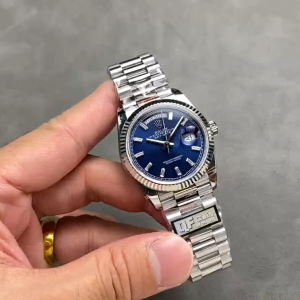 Rolex Day Date 36 36mm Bright Blue Diamond-Set Dial Fluted Bezel Presi m128236 0023
