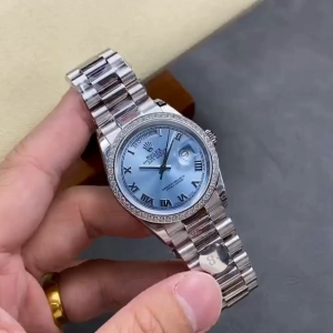 Rolex Day Date 36 Diamond Bezel Ice Blue Roman Dial m128396tbr 0019
