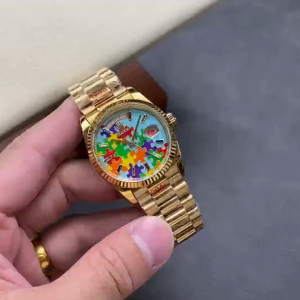 Rolex Day Date 128238-0106 36mm Yellow Gold Fluted Bezel Emoji Puzzle Dial