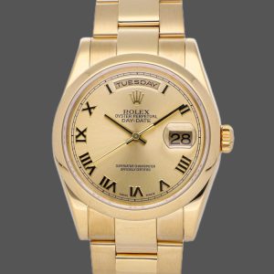 Rolex Day-Date 118208 Yellow Gold Champagne Dial Roman Numerals 36mm Unisex Replica Watch