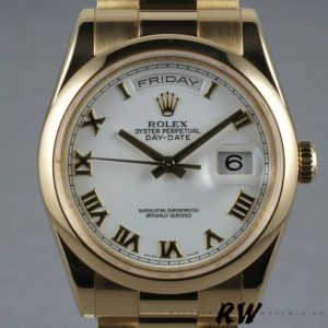 Rolex Day-Date 118208 Yellow Gold White Dial Roman Numeral 36mm Unisex Replica Watch