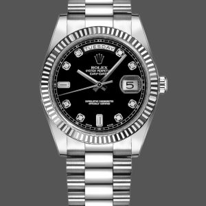 Rolex Day-Date 118239 Black Diamonds Dial Fluted Bezel 36mm Unisex Replica Watch