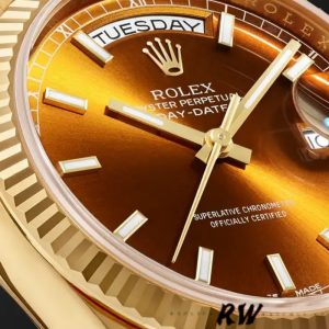 Rolex Day-Date 118238 Yellow Gold Index Cognac Dial 36mm Unisex Replica Watch