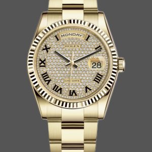 Rolex Day-Date 118238 Yellow Gold Pave diamond dial 36mm Unisex Replica Watch