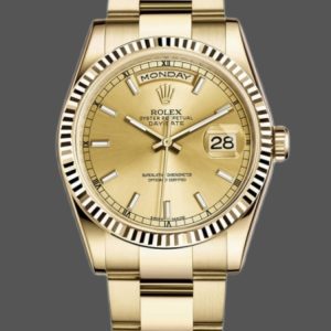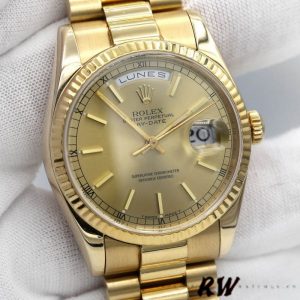 Rolex Day-Date 118238 Yellow Gold Fluted Bezel Champagne Dial 36mm Unisex Replica Watch