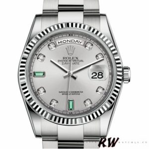Rolex Day-Date 118239 Silver Diamond Dial 36mm Unisex Replica Watch