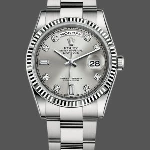 Rolex Day-Date 118239 Silver Diamond Dial fluted bezel 36mm Unisex Replica Watch