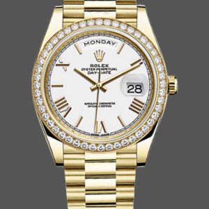 Rolex Day-Date 228349RBR White Roman Dial Diamond Bezel 40mm Mens Replica Watch