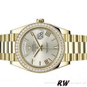 Rolex Day-Date 228349RBR Silver Roman Dial Diamond Bezel 40mm Mens Replica Watch