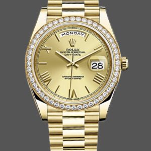 Rolex Day-Date 228348RBR Champagne Roman Dial Diamond Bezel 40mm Mens Replica Watch