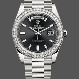 Rolex Day-Date 228349RBR Black Dial Diamond Bezel 40mm Mens Replica Watch
