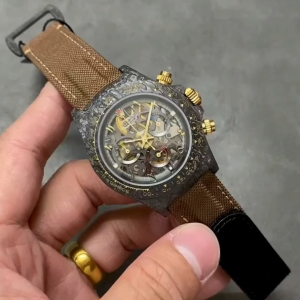 Rolex Daytona Cosmograph DIW Carbon Case Skeleton Dial Brwon Nylon Strap