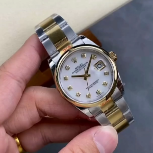 Rolex Datejust 36 Steel & Yellow Gold Mother of Pearl Diamond Dial M126203 0024 Women’s Watch