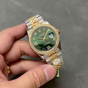 Rolex Datejust 36 Yellow Gold & Diamonds Olive Green Diamond Pave Roman Dial m126283rbr 0011