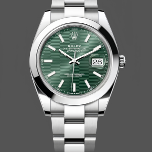 Rolex Datejust 41mm Stainless Steel 126334 0030 Mint Green Dial Fluted Jubilee