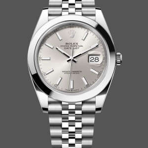 Rolex Datejust 41mm m126300 0004 Silver Stick DIal Oystersteel Case Domed Bezel