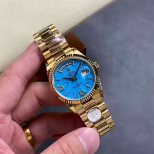 Rolex Day-Date 128238 Fluted Bezel Turquoise Diamond Dial 36MM Unisex Replica Watch
