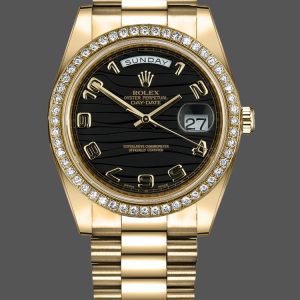 Rolex Day-Date 218348 Wave Black Dial 41MM Mens Replica Watch