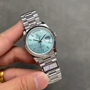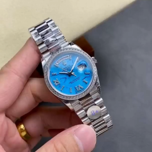 Rolex Day Date 36 Platinum Turquoise Diamond-Set Roman Dial Diamond Bezel m128396tbr 0016