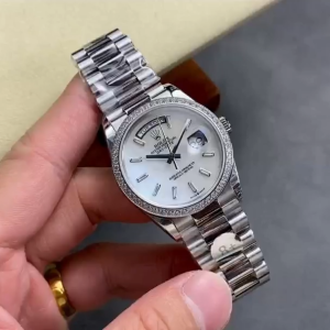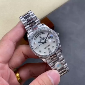 Rolex Day Date 36 MOP Dial Diamond Bezel Platinum m128396tbr 0022