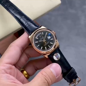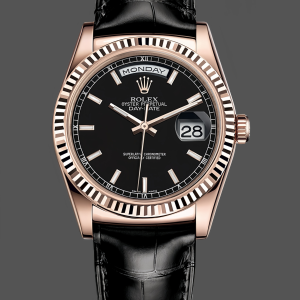 Rolex Day Date 36 Everose Gold Black Dial 118135 0063 Leather Watch