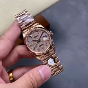 Rolex Day Date 36 Diamond Paved Dial Fluted Bezel 18K Everose gold 128235 0039 President Watch