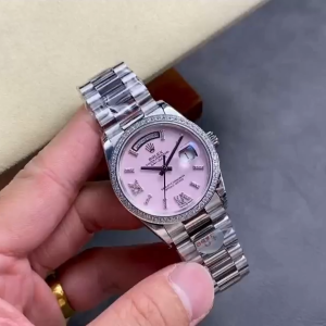 Rolex Day Date 36 Platinum Pink Opal Diamond-Set Roman Dial Diamond Bezel m128396tbr 0009