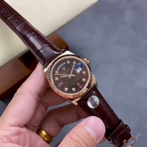 Rolex Day Date 36 Everose Diamond Chocolate 118135 0020 Watch
