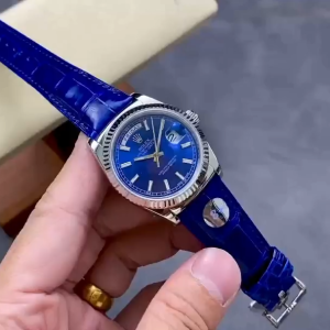 Rolex Day Date 36mm White Gold Fluted Bezel 118139 0004 Blue Index