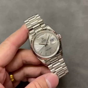 Rolex Day Date 36mm Platinum White Gold Silver Index 128236 0001