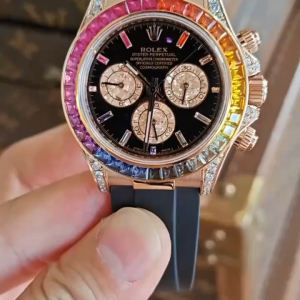 Rolex Daytona 116528 Rainbow Bezel Black Diamond Dial 40mm Mens Replica Watch