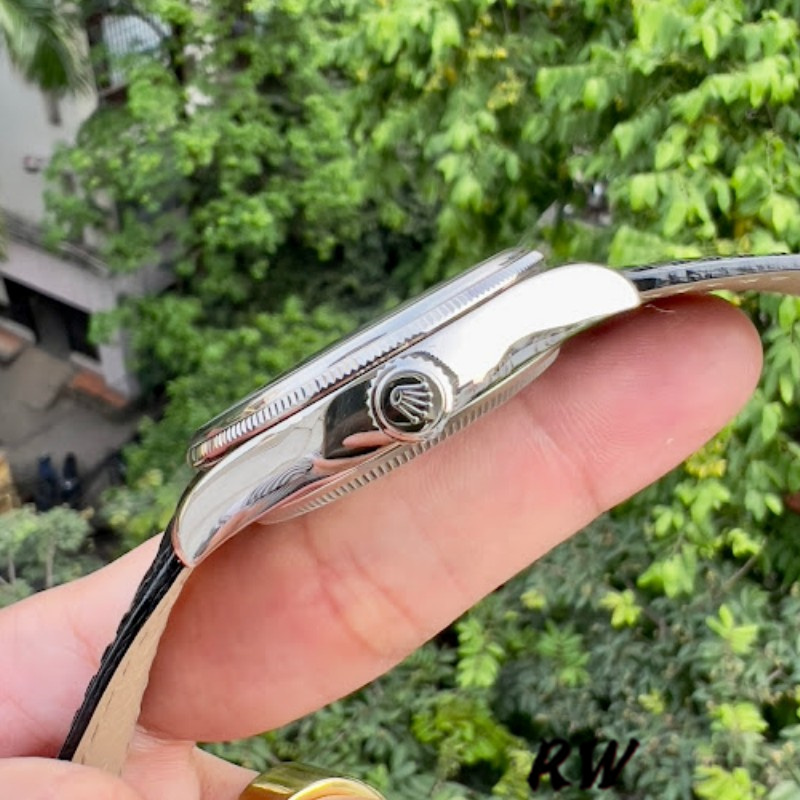 Rolex Cellini Date 50519 Black Leather Silver Dial 39mm Mens Replica Watch