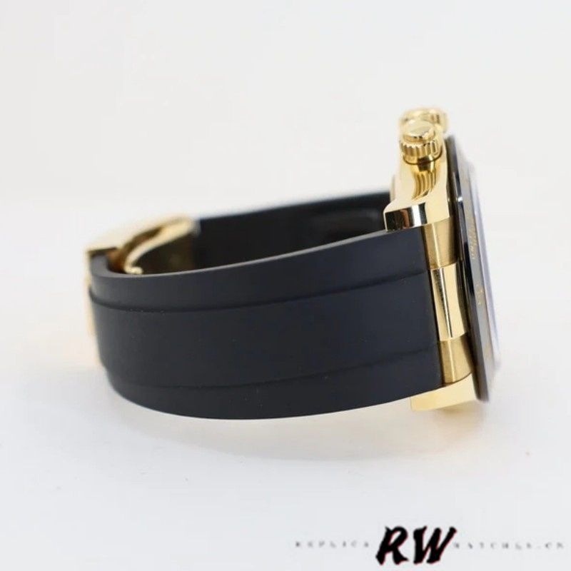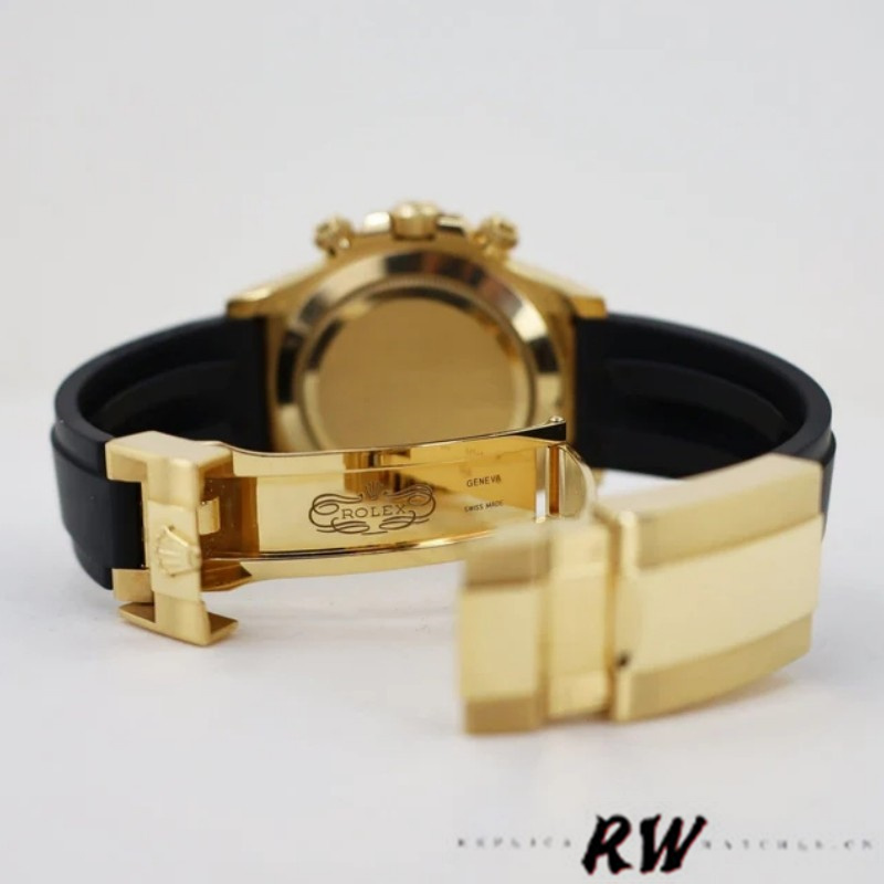 Rolex Cosmograph Daytona 116518LN White Dial Black Rubber Strap 40mm Mens Replica Watch.40mm yellow gold case, screw-down yellow gold back, screw-down crown and push buttons,black monobloc Cerachrom bezel with engraved tachymetric scale,sapphire crystal, white dial, index hour markers, chronograph central second hand, 30-minute counter at 3 o’clock, and 12-hour counter at 9 o’clock,black Rubber strap,folding safety buckle with rapid extension system.