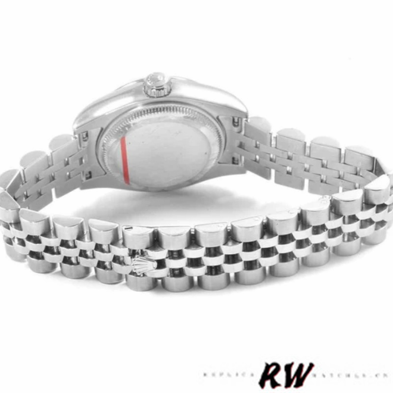 Rolex Datejust 179174 Sunbeam Black Roman Dial Fluted Bezel 26MM Lady Replica Watch, 26mm Stainless steel oyster case in diameter. White gold fluted bezel. Scratch resistant sapphire crystal with cyclops magnifier.Sunbeam Black Dial with Roman Numeral Markers. Date calendar at 3 o’clock aperture. Stainless steel jubilee bracelet with a hidden clasp.