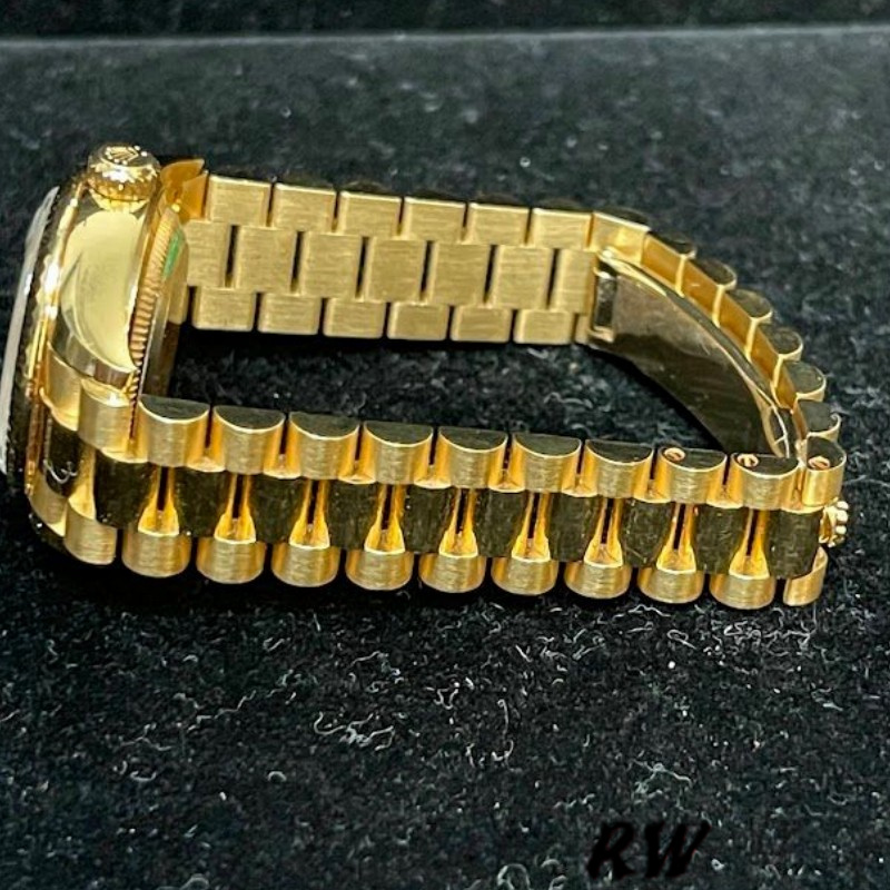 Rolex Datejust 279178 Linden Green Dial Fluted Bezel 28mm Lady Replica Watch, has a yellow gold 28 mm Round Case with Screw Down Crown and a yellow gold Fluted Bezel.Linden Green dial with Index Diamond hour marker. A Diamond-filled Roman numeral IX at the 9 o’clock position.Yellow gold President bracelet with semi-circular three-piece links, concealed folding Crownclasp buckle.