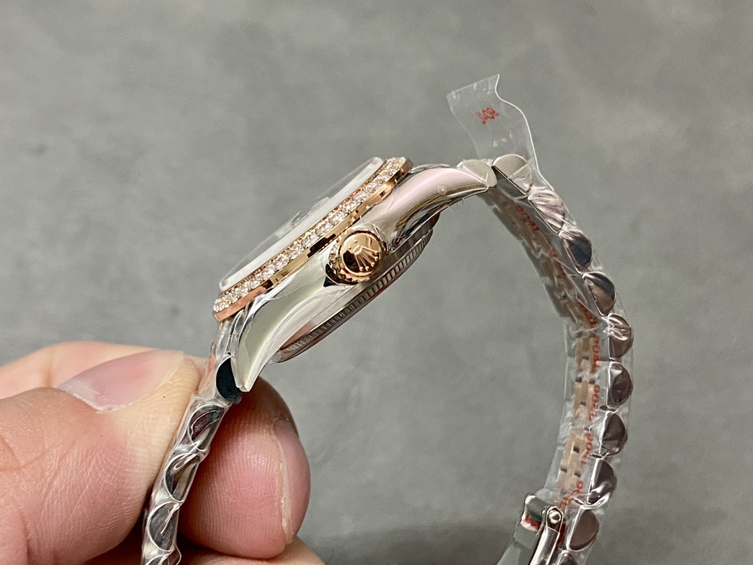 Rolex Datejust 36 Steel & Everose Gold Silver Fluted-Motif Dial Diamond Bezel M126281RBR 0021 Women’s Watch