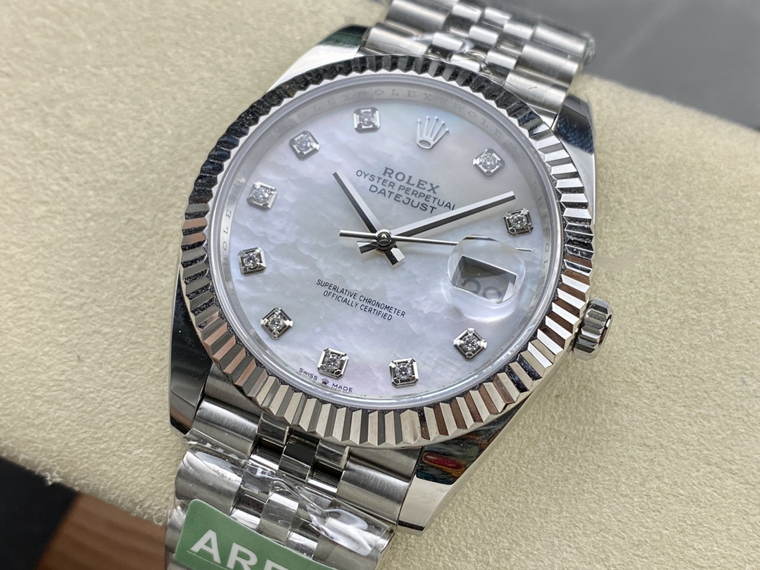 Rolex Datejust 41 Steel White Gold MOP Diamond Dial 126334 Men’s Watch