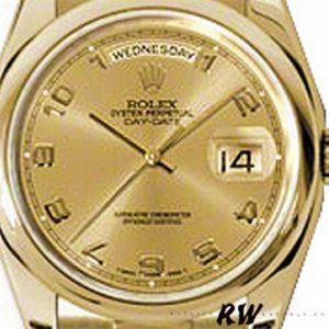 Rolex Day-Date 118208 champagne dial Arabic Numeral Hour Markers yellow gold 36mm Unisex Replica Watch