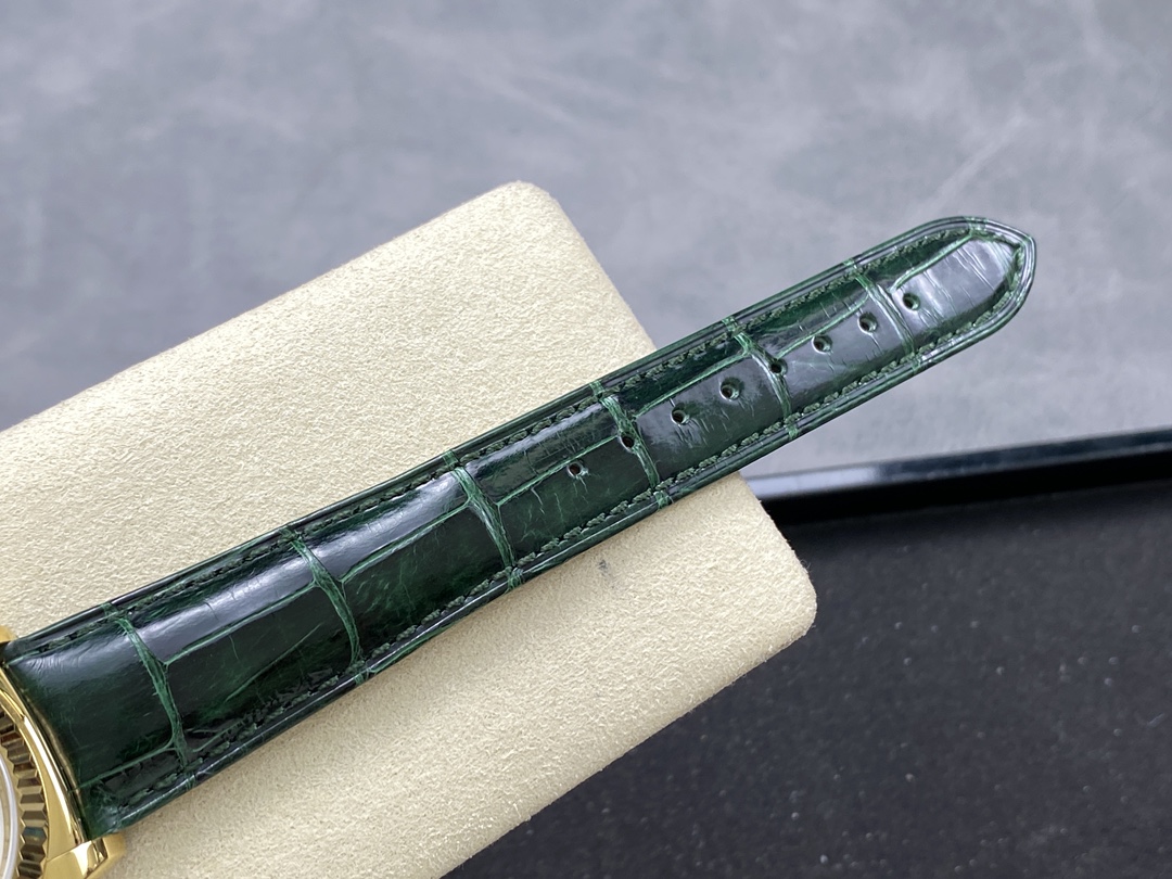 Rolex Day Date 36 White Dial 118135 0123 Green Leather Watch