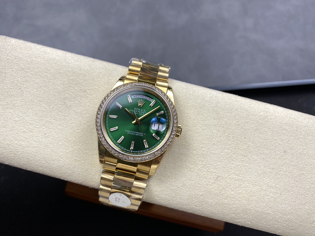 Rolex Day Date 36mm Green Dial Diamond-Set Bezel President Bracelet m128398tbr 0035
