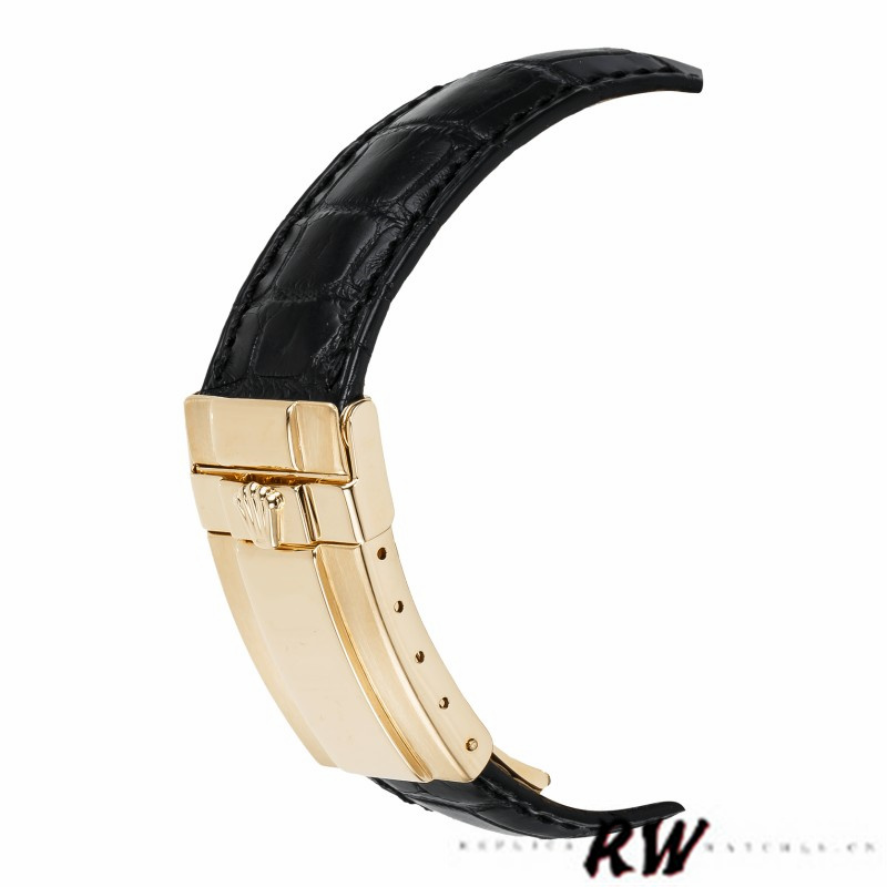 Rolex Daytona 116518 Black Leather Strap White Dial 40mm Mens Replica Watch.40.0 mm yellow gold case in diameter.yellow gold tachymeter engraved bezel. Scratch resistant sapphire crystal. White dial with arabic numerals. Small seconds hand at 6 o’clock. Centre chronograph hand, 30-minute counter at 3 o’clock and 12-hour counter at 9 o’clock. Black leather strap with yellow gold deployent buckle.
