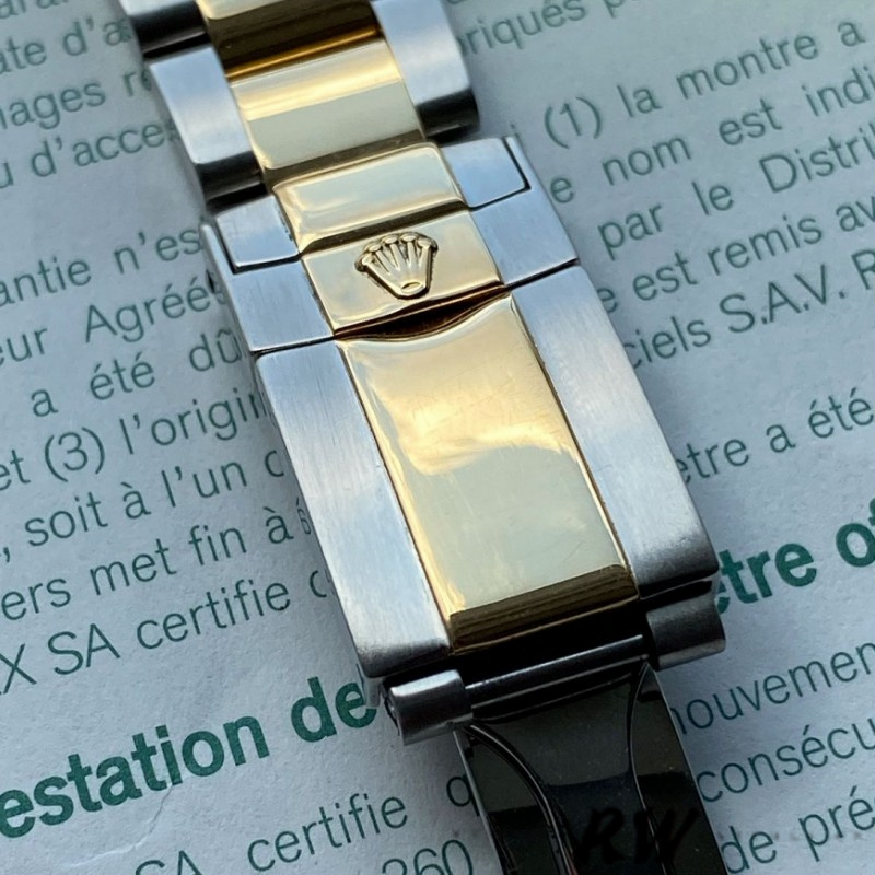 Rolex Daytona 116523 Stainless Steel Gray Slate Dial 40mm Mens Replica Watch.This particular Rolex Daytona has a gray slate dial, The large hour markers are outlined in gold. The small second sub dial is positioned at 6 o’clock. The minute counter is at 3 o’clock and the 12-hour totalizer at 9 o’clock. The dial is protected by the scratch-resistant sapphire crystal. 40mmstainless steel case. The winding crown and the chrono pushers are screwed. Golden tachymeter bezel is used to read the speed. The Daytona watch is accompanied by the beautiful two-tone Oyster bracelet, which is in excellent condition to match the watch.
