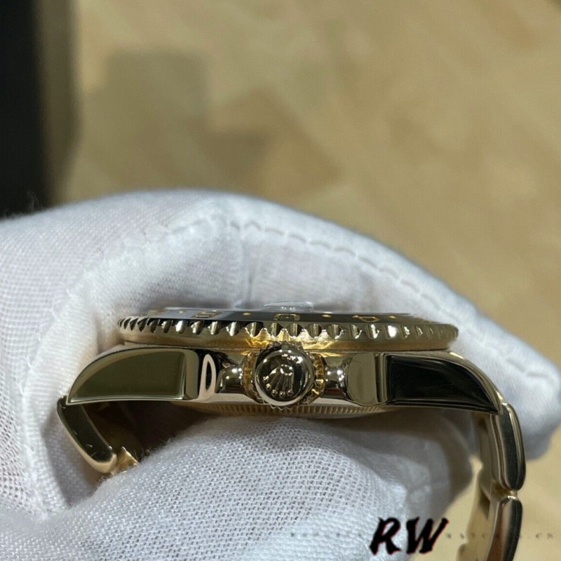 Rolex GMT Master II 116718LN Oyster Bracelet Black Dial 40mm Mens Replica Watch.Case diameter 40mm.Featuring a black dial housing a date aperture at 3 O’clock with an external Cyclops surrounded by a 24-hour black ceramic GMT bezel. Luminescent Hands & Hour Markers.Scratch resistant sapphire crystal. Deployment clasp. Yellow Gold Oyster Bracelet.Folding Oysterlock Safety Clasp with Comfort Extension Link