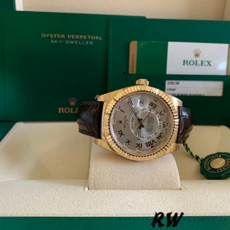 Rolex Sky-Dweller 326138 Sunray Silver Dial Yellow Gold 42MM Mens Replica Watch