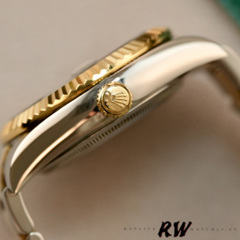 Rolex Sky-Dweller 326933 Black Dial Stainless Steel 42MM Mens Replica Watch,42mm Stainless steel and yellow gold case in diameter. Yellow gold fluted rotatable ring command bezel. Scratch resistant sapphire crystal with cyclops magnifier. Black dial with raised luminous baton hour markers. Centre hour, minute and seconds hands. 24-hour display on off-centre disc. Second time zone. Instantaneous annual calendar at 3 o’clock and rapid-setting of the date. Month display via 12 apertures around the circumference of the dial. Stainless steel and yellow gold oyster bracelet with fold over clasp.