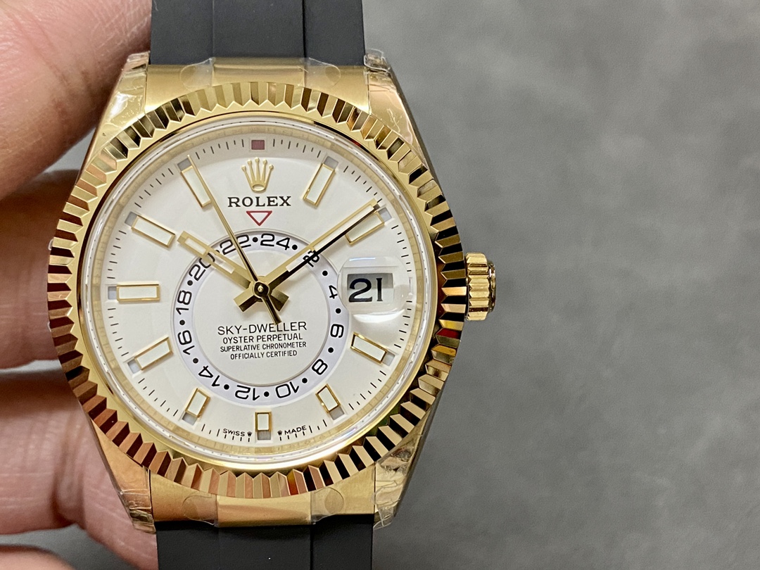 Rolex Sky-Dweller 326938 Yellow Gold White Dial 42mm Mens Replica Watch