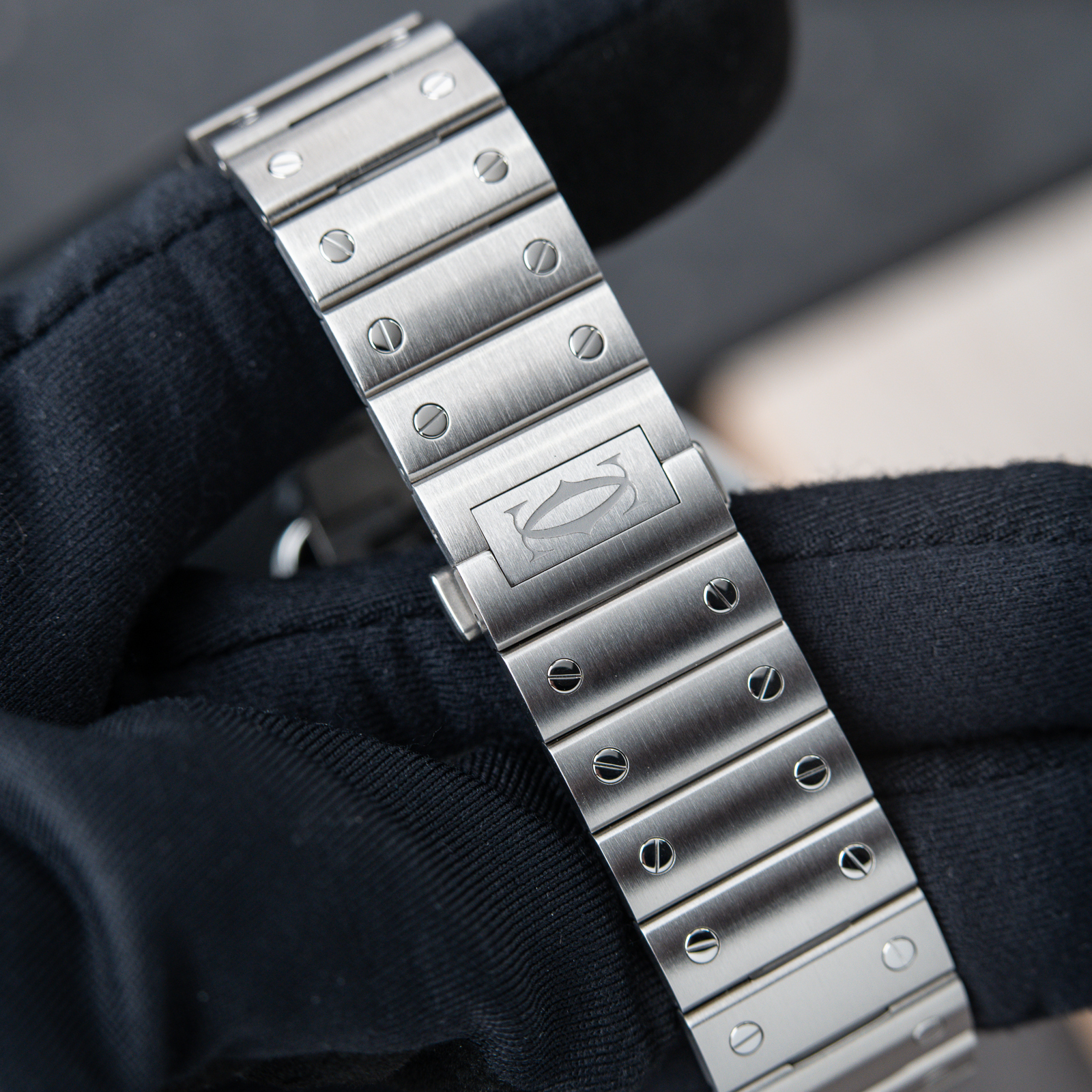 A modern marvel as one of the first ever wristwatches at the time of its invention in 1904, the Santos de has evolved into a true icon. It was created by Louis for the famous Brazilian aviator Alberto Santos Dumont, who wished to tell time while flying. The recognizable design, defined by rounded angles in the dial, a seamless curve of the horns and exposed screws, has inspired countless reinterpretations over the past century.
